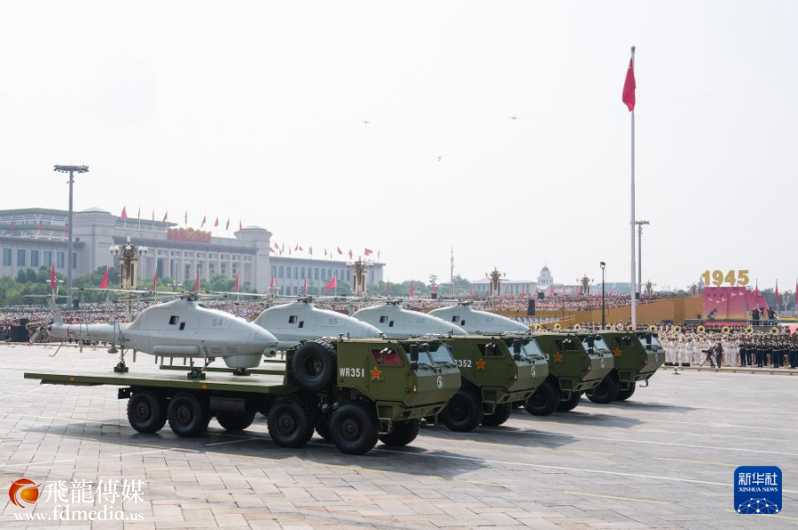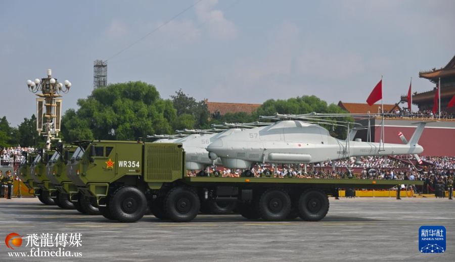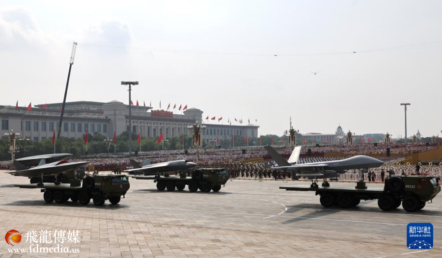 9月3日,纪念中国人民抗日战争暨世界反法西斯战争胜利80周年大会在北京隆重举行。这是空中无人作战方队接受检阅。新华社记者 刘金海 摄