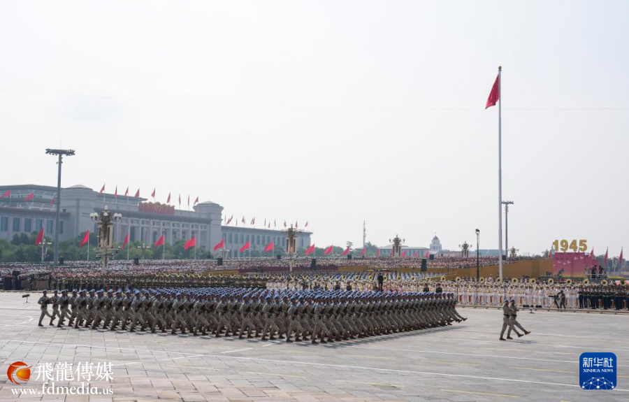 9月3日,纪念中国人民抗日战争暨世界反法西斯战争胜利80周年大会在北京隆重举行。这是维和部队方队接受检阅。新华社记者 鞠焕宗 摄