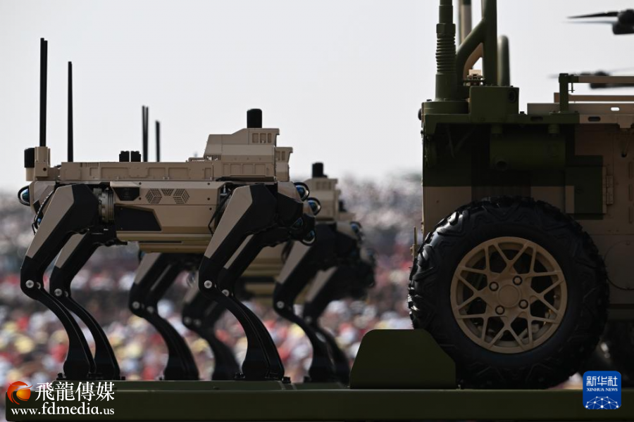 9月3日,纪念中国人民抗日战争暨世界反法西斯战争胜利80周年大会在北京隆重举行。这是陆上无人作战方队接受检阅。新华社记者 李一博 摄
