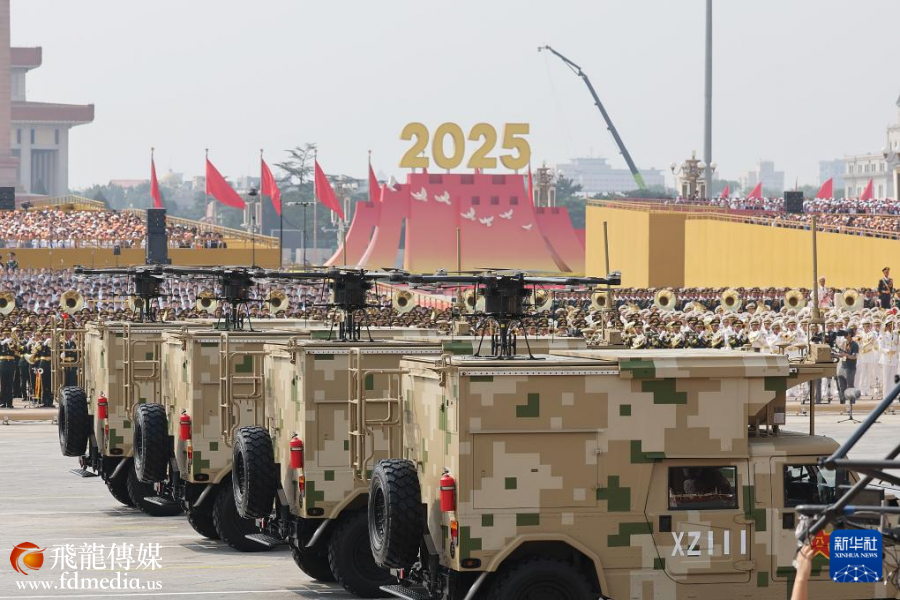 9月3日,纪念中国人民抗日战争暨世界反法西斯战争胜利80周年大会在北京隆重举行。这是反无人机方队接受检阅。新华社记者 潘昱龙 摄