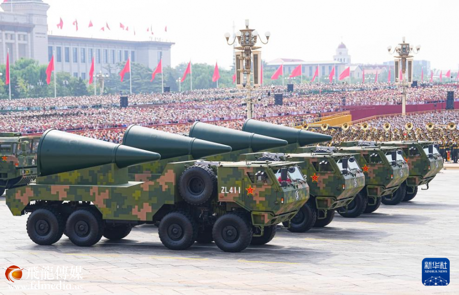 9月3日,纪念中国人民抗日战争暨世界反法西斯战争胜利80周年大会在北京隆重举行。这是核导弹第一方队接受检阅。新华社记者 刘金海 摄