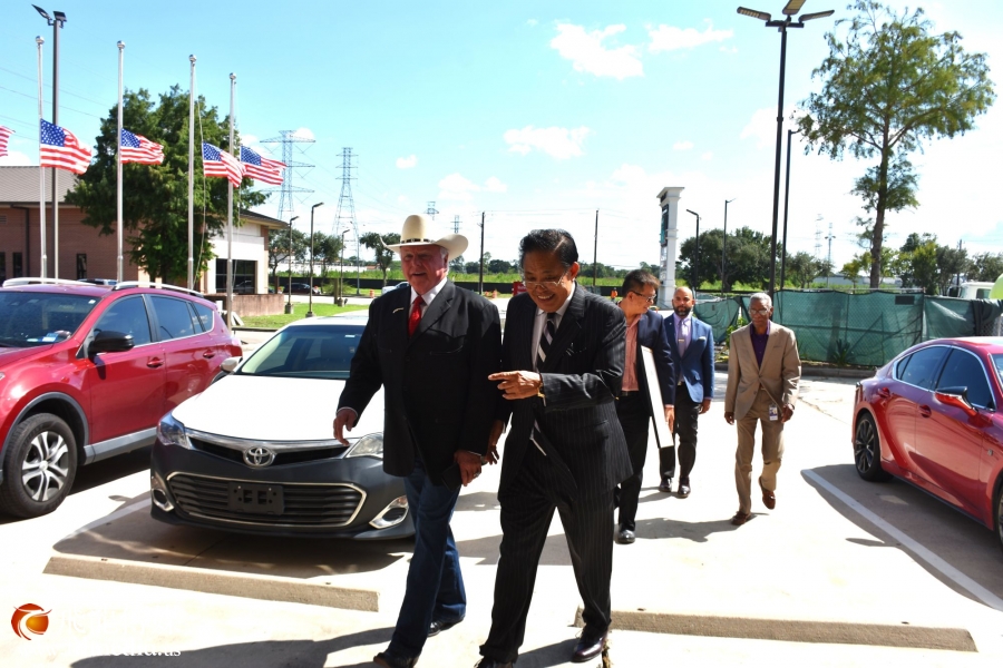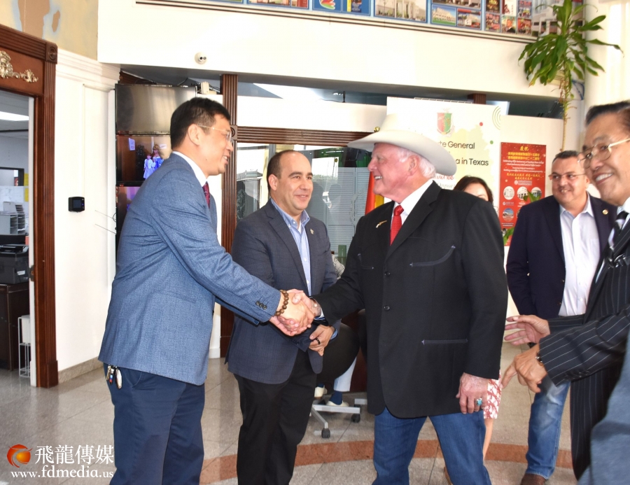 美南新闻集团董事长李蔚华陪同德州农业厅长 Sid Miller参观。