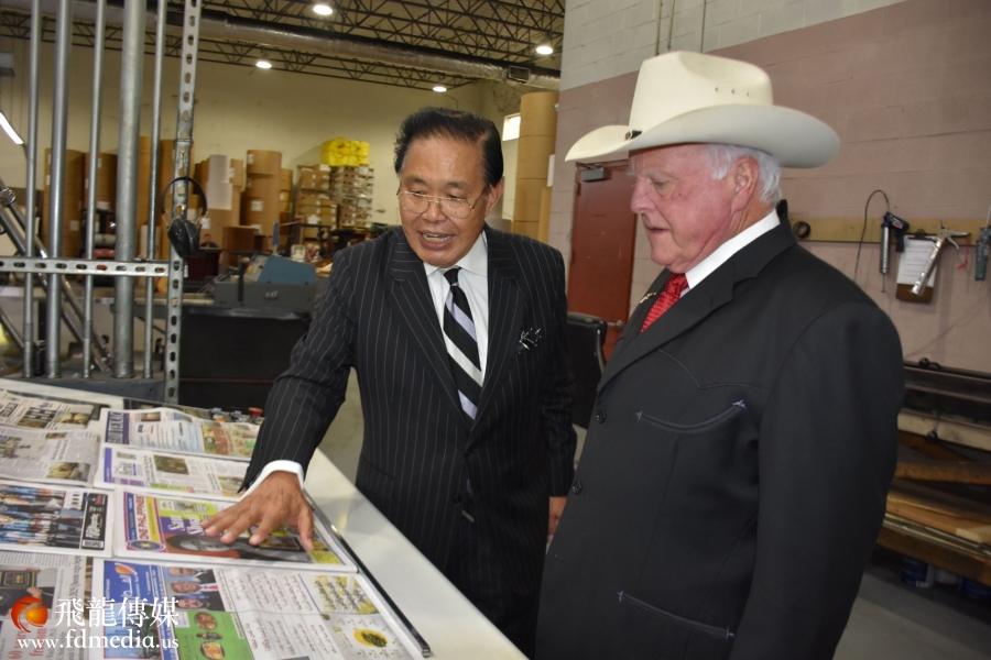 在活动开始前,美南新闻集团董事长李蔚华陪同嘉宾们参观了美南新闻印刷厂、摄影棚及新建银行大楼,并介绍了美南新闻 40 多年来在新闻领域的影响力。Sid Miller 厅长高度肯定了李蔚华董事长对华人社区及侨界的贡献。