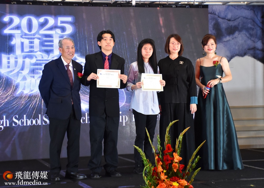 当晚最温馨的时刻,是由恒丰银行及华盛捐助的“优秀华裔高中生奖学金”颁奖仪式。恒丰银行总裁张永男、公共事务部主任周明洁与华盛代表一同为获奖学生颁奖,鼓励年轻一代继续传承勤学奋进的精神。