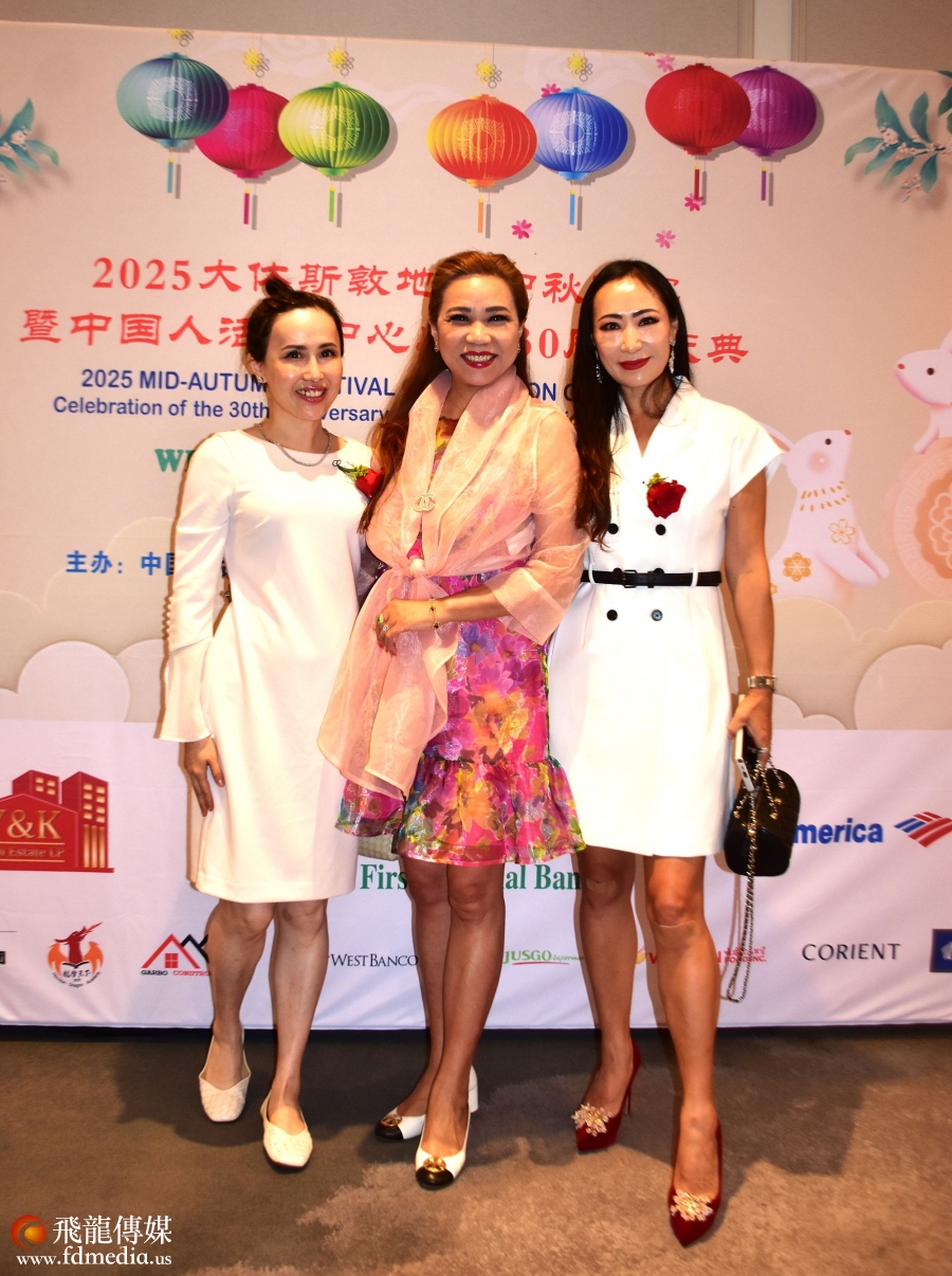 出席晚宴的贵宾包括中国驻美大使馆王清军参赞、美国国会议员Al Green、德州众议员吴元之(Gene Wu)、斯坦福市副市长谭秋晴、糖城市长Carol McCutcheon、Fulshear市议员王力(Patrick Powers)、恒丰银行总裁张永男、亚洲协会前主席Charles Foster与夫人陈烨、亚商会主席陈帆等政要与社会贤达。嘉宾们纷纷上台致辞,共同举杯祝愿中秋团圆、世界和平。