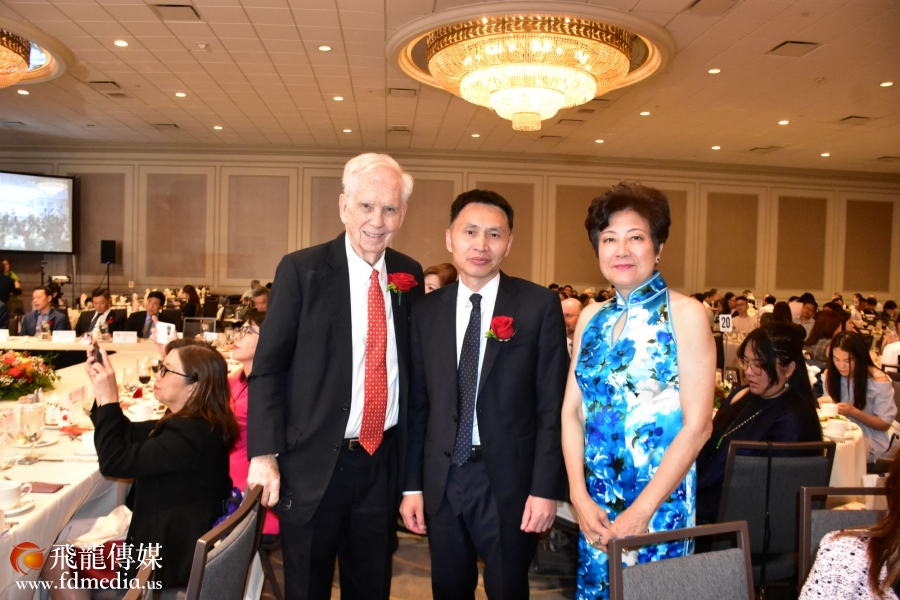 Fulshear市议员王力(Patrick Powers)、中国人活动中心董事会主席陈灼刚及夫人吴静玲合影留念。