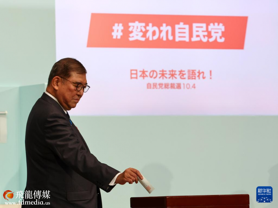 10月4日,高市早苗在日本东京自民党总部进行的自民党总裁选举中投票。