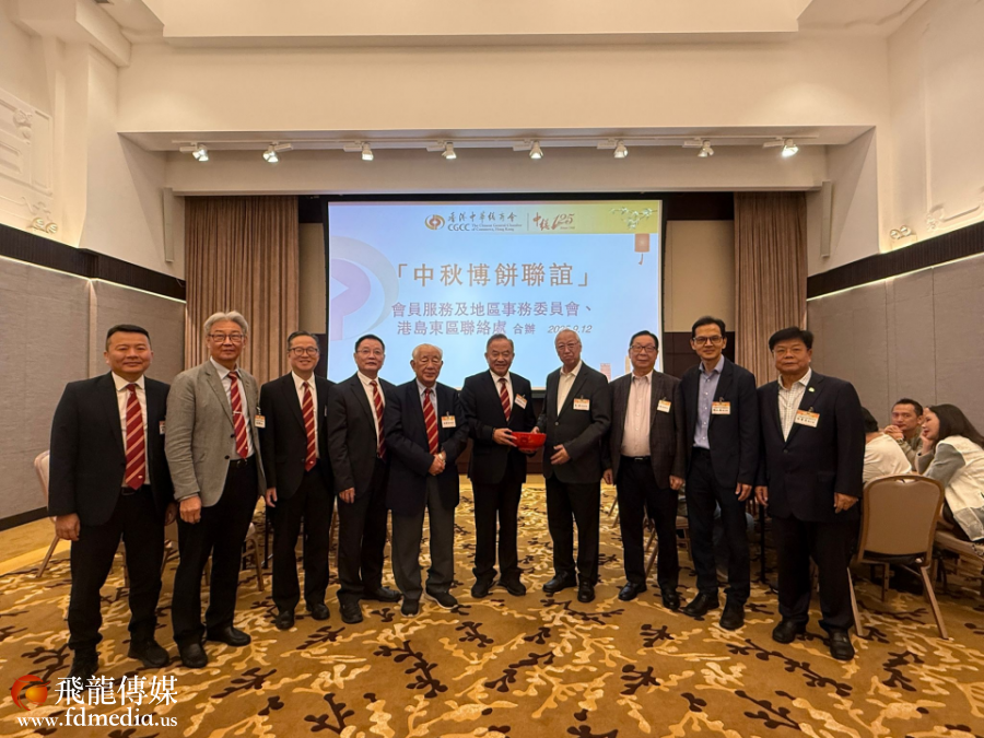 2025年9月吳江會董(左一)、陳建輝主席(左二)、陳建年常董(左三)、邱建新常董(左四)、林廣兆會長(左五)、樊敏華會長(右五)、袁武會長(右四)、林銘森會長(右三)、張洪鈞會董(右二)、許寶月會董(右一)等,參加香港中華總商會會董東區委員會中秋博餅活動合影