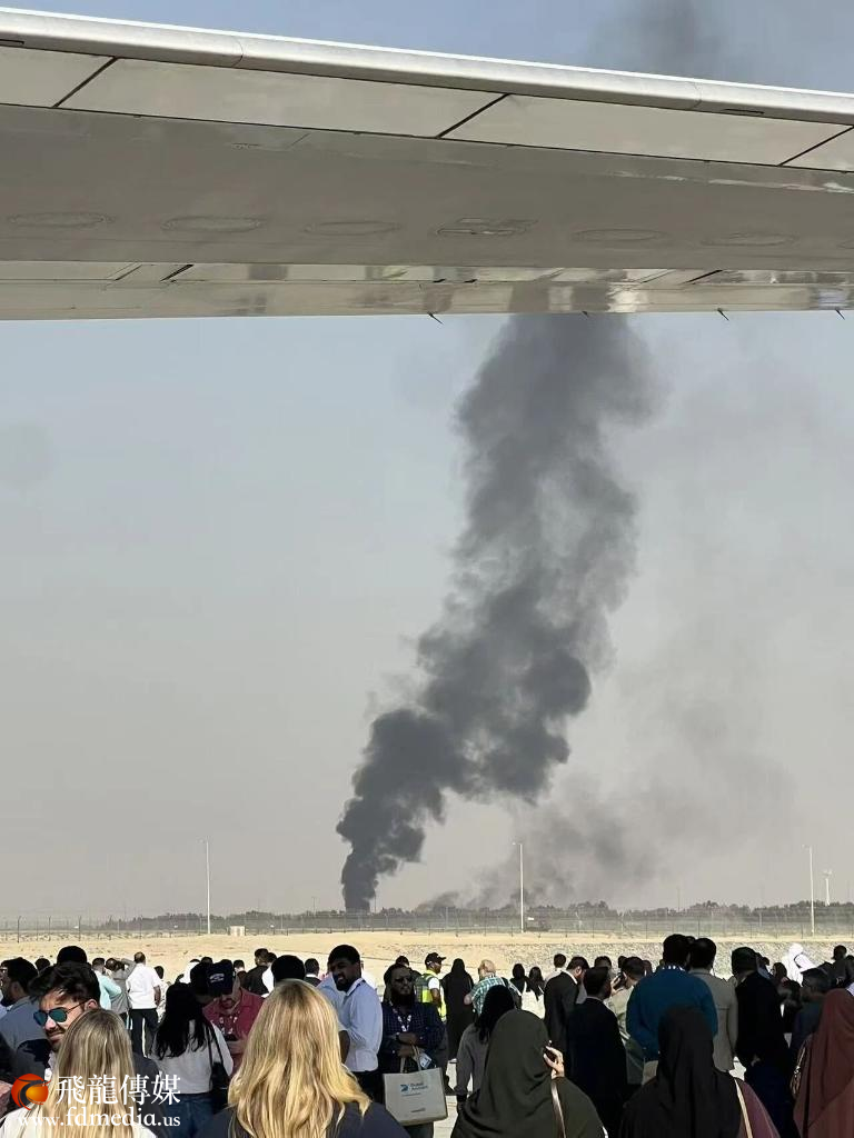 11月21日,在阿联酋迪拜,飞机坠毁现场冒出滚滚浓烟。新华社发