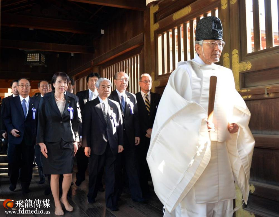 2013年4月23日上午,由日本跨党派国会议员组成的“大家都来参拜靖国神社国会议员之会”168名成员集体参拜了供奉有二战甲级战犯牌位的靖国神社。这些国会议员中有时任执政党自民党政调会长高市早苗。新华社/法新