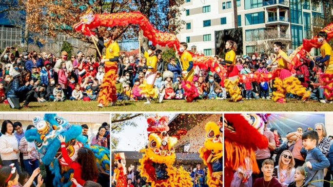 庆祝活动将由传统舞狮在节日草坪上拉开序幕, 如果你足够幸运,不要错过向儿童发放红包的机会。您可以欣赏充满活力的中国音乐与舞蹈表演,收到由书法家刘建昌,Leon Liu老师和书法爱好者们书写新春吉祥语,为你译写的中文名,尝试用毛笔学习书法的基本笔画等。动手制作农历新年主题手工艺品,并免费参观《皮卡丘之家:艺术、动漫与流行文化》(The House of Pikachu: Art, Anime, and Pop Culture)展览!现场还有各色风味小吃和饮料供游客购买。