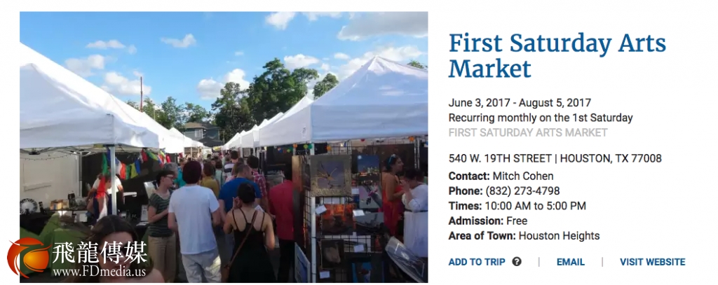 详情浏览Visit Houston: https://www.visithoustontexas.com/event/first-saturday-arts-market/49492/